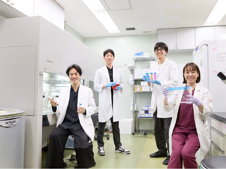 血液腫瘍学は、基礎医学と臨床医学が密接につながり、様々な分野が融合した学問です。例えば、造血幹細胞や各血液細胞を理解するには発生学(正常造血)の視点が不可欠であり、造血幹細胞移植のメカニズムを理解する上では、再生医学(造血組織の再構築)や腫瘍免疫(ドナーリンパ球による抗腫瘍効果)の視点が重要です。また、造血器腫瘍の病態を理解するためには、染色体・遺伝子異常など分子遺伝学的な視点に加えて、それを機能的に説明するための分子生物学・腫瘍生物学的なアプローチ、さらには、それらを網羅的な視点から理解するゲノミクス的視点が必要です。実際に、血液腫瘍学の実臨床においてもこれらの視点は重要であり、キメラ遺伝子検出、サイトカイン製剤、チロシンキナーゼ阻害剤、そして今日の二重特異性抗体やCAR-T療法にいたるまで、多くの診断技術や治療薬に応用されています。血液腫瘍学は、そのような複数の学問領域の発展と融合によってもたらされたリーディングフィールドであり、当科においても、臨床的疑問を出発点とした基礎研究を多数行っています。