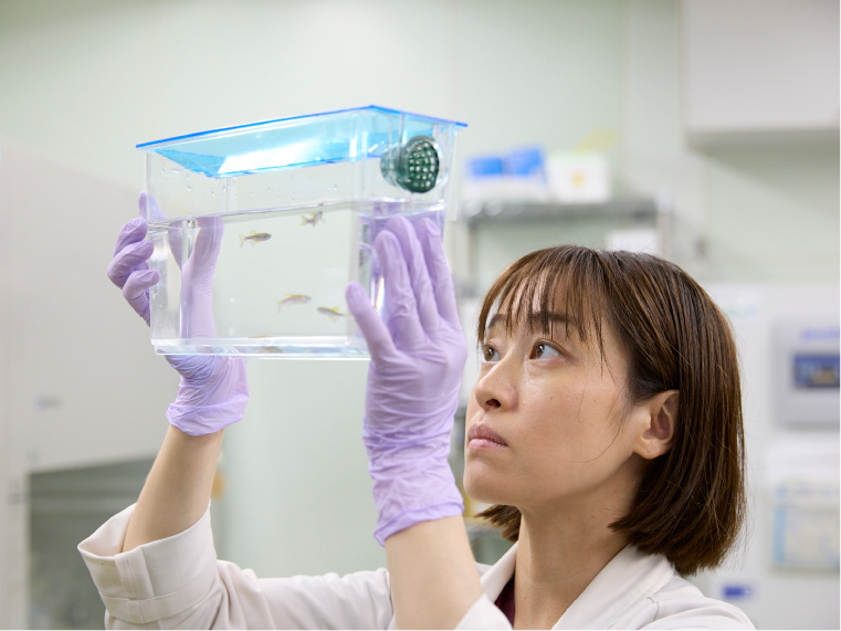 がんを含むヒトの疾患の理解のために、モデル生物を用いた解析が数多く試みられてきました。それらは疾患モデルとして病態の理解に繋がるほか、遺伝子の機能を解析したり、薬剤の効果を検討するのにも有用です。当科では、ゼブラフィッシュを用いて血液疾患の研究をしています。