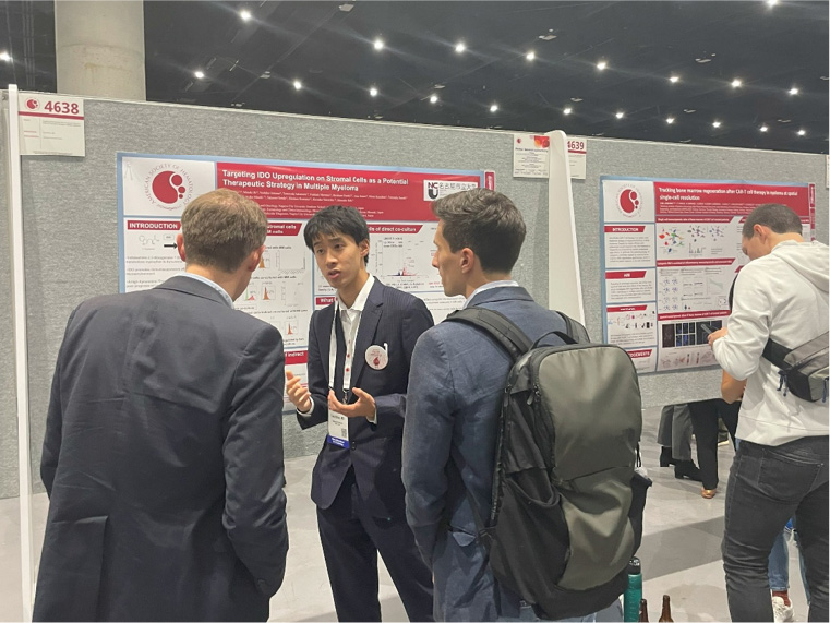 二重特異性抗体やCAR-T細胞療法は多発性骨髄腫において大きな治療効果を示す一方で、効果の持続には個人差があり、再発や抵抗性の課題が残されています。その背景には、腫瘍の遺伝子異常や免疫抑制的な微小環境、T細胞の疲弊など多様な要因が関与すると考えられますが、未だ十分に解明されていません。本研究では、これらの感受性因子を明らかにするとともに、免疫調節薬や分子標的薬などの併用薬を探索し、その組み合わせによって免疫・細胞療法の効果を高める戦略の確立を目指します。
